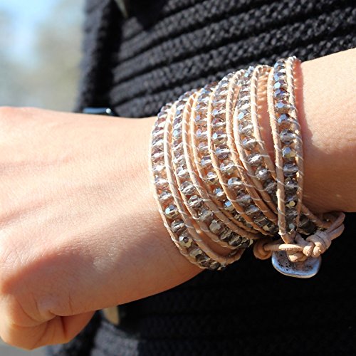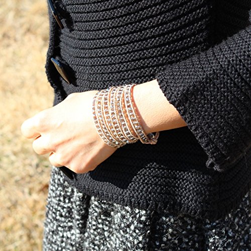 아름다운 크리스탈을 레더에 곁들였다, 대인기의 5 연랩 팔찌.품위가 있는디자인나와 어떤 스타일로도 맞추기 쉬운 만능 아이템입니다.베이스 메탈의 유치구에서 3단계에서크기조절 를 할 수 있습니다.