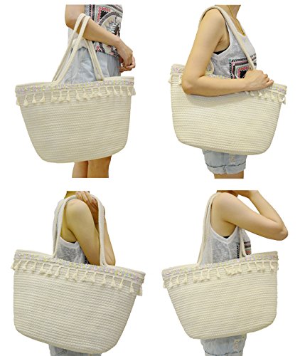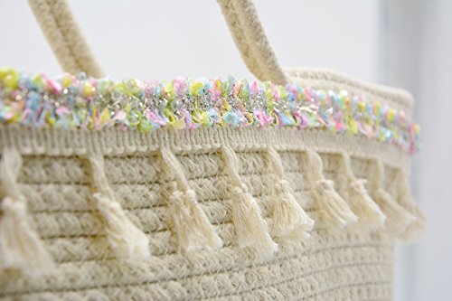 - COLORFUL BOHEMIAN STYLE: Handwoven, Decorated with cute Tassels and built in sturdy construction, make this travel tote fashionable, nature and unique. If you are a fashionista, this summer shoulder bag is the best choice for you.