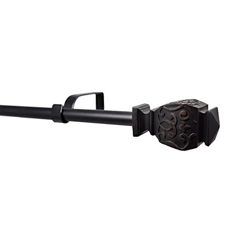 Add an Elegant Window Treatment To Your Home or Office An Ornate Cafe Rod - Beautify your indoor living space with elegant cafe rods. - A symmetric finish and classic look serves as an attractive window treatment option. Well Designed - 5/8 inch diameter rod adjusts from 28-48 inches wide. - Two included mounting brackets extend the rod approximately 3 inches away from the wall. - Included Allen wrench can be used to unscrew and remove the hard resin finials. - Great for light to medium weight curtains.