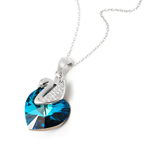 -. Binding : Jewelry -. Brand : Swarovski -. Color : Blue -. Department : womens -. Feature : Blue and White Heart Shape Pendant / Made With Swarovski Elements / Comes with 18 Inch Chain / Pendant: 17x17 mm / Gemstones may have been treated to improve their appearance or durability and may require special care. -. NumberOfItems : 1 -. PackageQuantity : 1 -. ProductGroup : Jewelry -. ProductTypeName : FASHIONNECKLACEBRACELETANKLET -. Title : Sterling Silver Blue Heart Shape Swan Pendant Made With Swarovski Elements