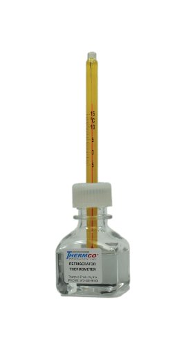 Thermco ACCBB210S ACCU-SAFE Enclosed Chamber Bottle Spirit Filled Thermometer for Blood Banks Refrigerator, 180mm Height, -2 to 10°C Range, 0.1°C Division