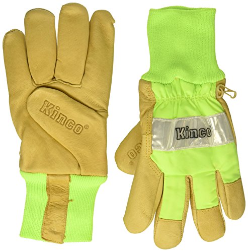 Kinco 035117939035 Hi Vis Lined Grain Pigskin Leather Palm Work Glove with Knit Wrist, Green, Single Pair