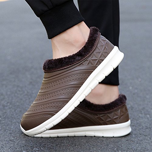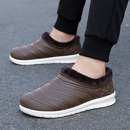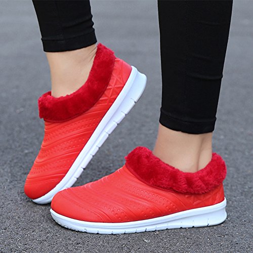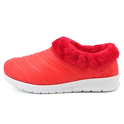 Binding : Apparel Product Description Specification: Name: Unisex/Couple/Lovers Faux Fur Waterproof House Slippers Fuzzy Plush Indoor Outdoor Mens Womens Home Garden Shoes Condition: 100% Brand New Closure: Slip-on closed toe Material: Plastic material Applied Season: Winter/Autumn/Spring Colors: Pink,Red,Light Blue for women; Black,Brown,Dark Blue for men Features: Waterproo,Warm,Lightweight, Non-slip, Comfortable to wear Applied Occasions: Indoor outdoor,bedroom,home,garden,kitchen,dining room,office,study,walking,room,airplane,train,subway,walking dog,garden etc An awesome Christmas present/birthday gift/New Year GIFT for or friends, wife/husband, girl/boy friend, colleagues,daughter,colleagues,etc Size Chart : Women Size Information: US Size 6 B(M) = Heel to Toe 9 inch(23cm) = China Size 36 US Size 6.5 B (M) = Heel to Toe 9 1/4 inch(23.5cm) = China Size 37 US Size 7 B (M) = Heel to Toe 9 1/2 inch(24cm) = China Size 38 US Size 7.5 B(M) = Heel to Toe 9 5/8 inch(24.5cm) = China Size 39 US Size 8 B (M) = Heel to Toe 9 7/8 inch(25cm) = China Size 40 Men Size Information: US Size 7 D(M) = foot length 9.84 inch = 25 cm (heel to toe) US Size 7.5 D(M) = foot length 10.03 inch = 25.5 cm (heel to toe) US Size 8 D(M) = foot length 10.24 inch = 26 cm (heel to toe) US Size 9 D(M) = foot length 10.43 inch = 26.5 cm (heel to toe) US Size 9.5 D(M) = foot length 10.63 inch = 27 cm (heel to toe) 0