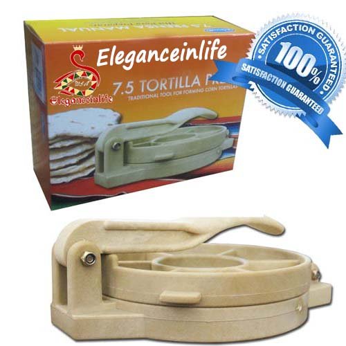 Tortilla Press with gift box White high impact plastic. Portable, can be used anywhere Leveraged handle; Manual operation Easy to Clean, dishwasher safe Easy to assemble; Ideal for making fresh tortillas. Lightweight and practical