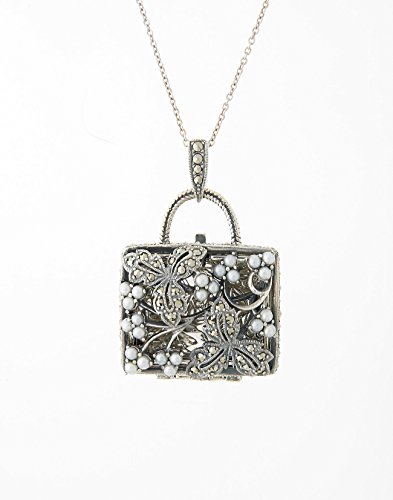 -. Binding : Jewelry -. Brand : R.Victorian New York -. Color : White -. Department : womens -. Feature : Made of 925 Sterling Silver / Handbag-shaped locket pendant with beautifully engraved back / Cultured Fresh Water Seed Pearl and Prong Set Marcasite / Handcrafted in our P.R.Ivate factory in Thailand / Gift Boxed -. Label : R.Victorian New York -. Manufacturer : R.Victorian New York -. Model : 204P0061-X1 -. ProductGroup : Jewelry -. ProductTypeName : FASHIONOTHER -. Publisher : R.Victorian New York -. Studio : R.Victorian New York -. Title : Seed Pearl and Marcasite Pocket Book Locket Pendant (Pearl) - 925 Sterling Silver
