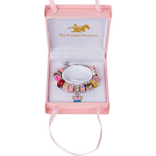 Girls Charm Bracelet With Charms, Fits European Style Jewelry Jewelry, Pink First Day Of School
