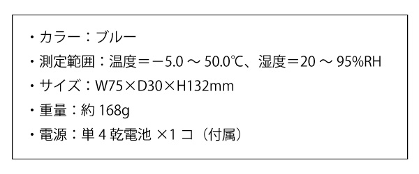 ●湿度測定精度:35~75%±5%、それ以外±10%