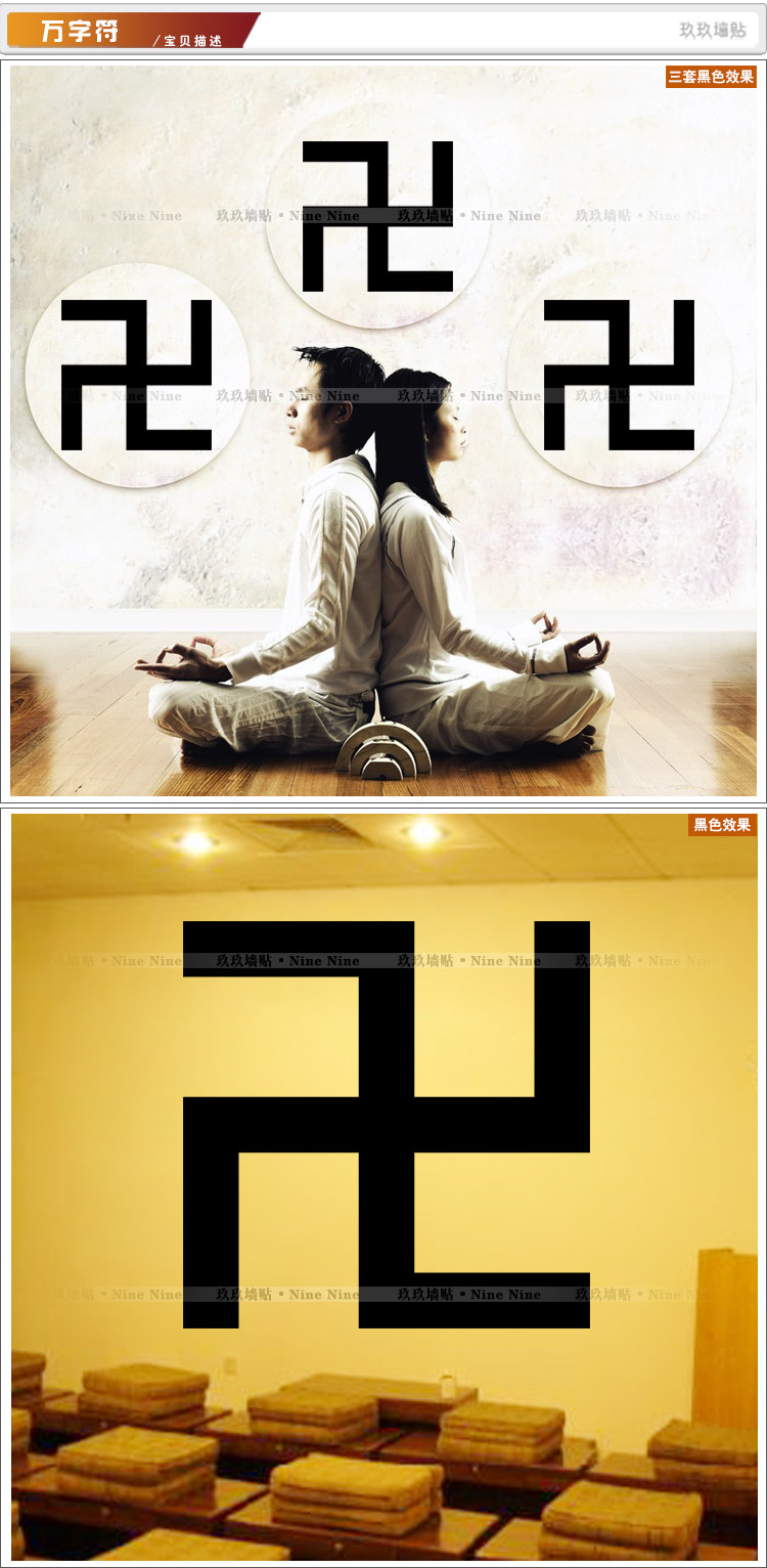 墙贴太极八卦图公司家居家风水镇避邪吉祥万德万字符宅贴纸贴画