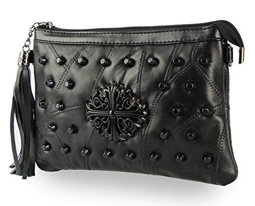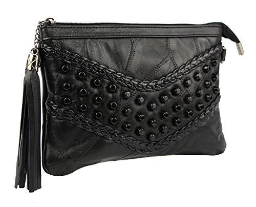 -. Title : Black Punk Rivets Braided Clutch Handbags CrossBody Purse with Tassel Zipper