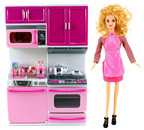 -. Title : My Happy Kitchen Dishwasher & Stove Battery Operated Toy Doll Kitchen Playset w/ Toy Doll, Lights, Sounds, Perfect for Use with 11-12" Tall Dolls