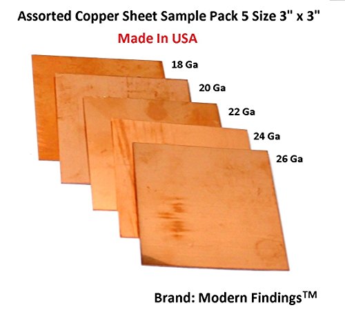 Assorted Copper Sheet Sample Pack of 5 (3" x 3") 18 - 20 - 22 - 24 - 26 Ga