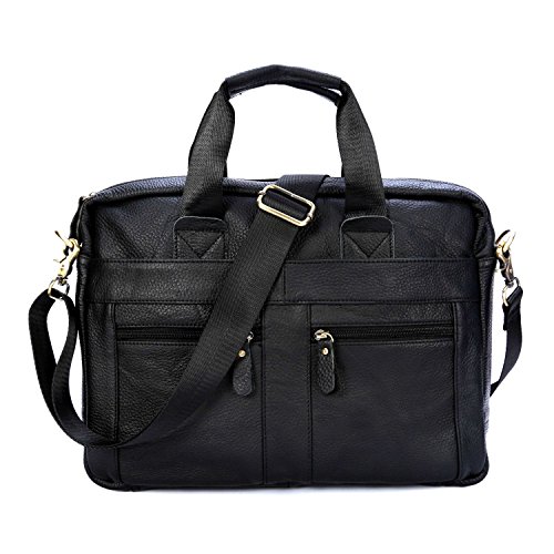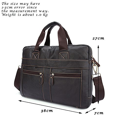 Product Description Material: Genuine cowhide leather Product Dimensions: 14.2 x 2.8 x 11.4 inches, 26 x 7 x 29 cm Weight: 2.2lb, 1000g Occasion: Business, office, work, etc Style: Classic retro style for men Convenient, comfortable, and easy to carry, the Genold Laptop Tablet Bag is a slim shoulder bag designed protect and transport to your electronics. Slim, compact case is perfect for carrying laptops without unnecessary bulk! Structure: External: 2* front zipper pockets for small items such as wallet, pens, keys, cellphone easy to access 1* middle pocket closed with magnetic button for A4 size magazines, tablet, iPad, notebooks, etc 1* back zipper pocket Internal: 2* small wall pockets 1* zipper pocket 1* sleeve protect for 14 inch laptop, portable mouse, MP3 player, etc About Genold Genold designs feature-rich, versatile adventure lifestyle gear for adventurers everywhere. Since our founding in 2010, we've committed ourselves to creating durable, affordable product with distinctive details, delivering the freedom to go anywhere-near or far, on roads or trails, on mountain ridges or snowy slopes, no matter what form your adventure takes. Guarantee: - Every product sold by Genold has been strictly produced, selected and tested by the quality supervision department. We guarantee that every customer could purchase high quality products and get satisfied shopping experience! - If you have any problem about the product, please do not hesitate to contact us, we are more than happy to help you all the time!