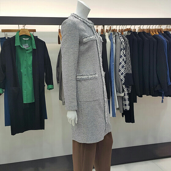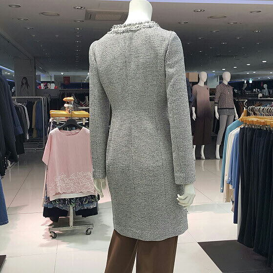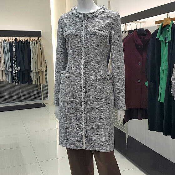 투톤색상의 트위드 원피스겸 자켓 개념으로코디하여도 무방하며 지퍼형태로 슬림한라인으로 다양한 아이템으로 연출해 보세요