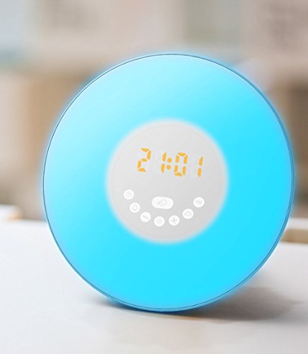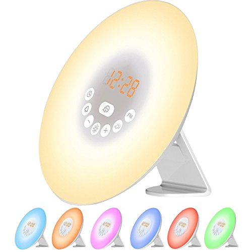 YiShi Alarm Clock, Digital Clocks, Wake Up Light, Electronic Sunrise Simulator Alarm Clock With 7 Colors, 6 Nature Sounds, Fm Radio, Touch Control & Usb Charger, White