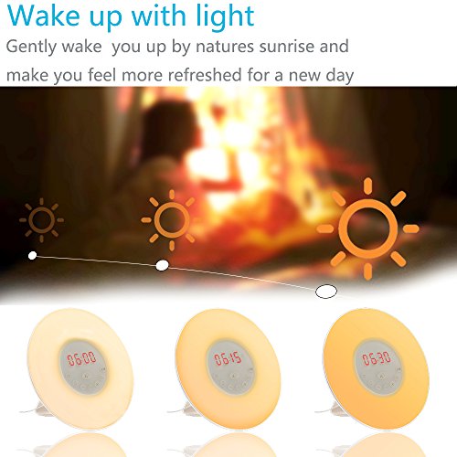 FM RADIO / 6 NATURE SOUNDS / 15 VOLUME LEVELS: This sunrise simulation wake-up light offers 6 natural sounds which can let you feel the beauty of the nature. You not only could choose 1 - 15 volume level but also could set FM Radio as your the 7th sound.