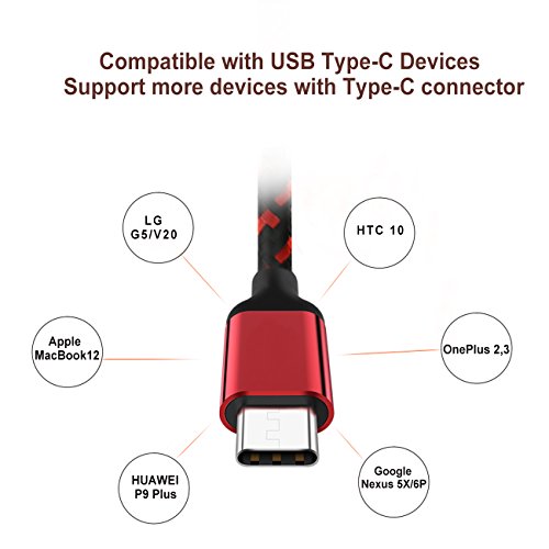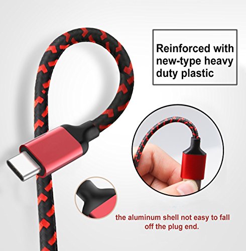 Micro USB Type-C to USB 2.0 Cable, 2 Pack 6 FT Nylon Braided Charging Cable for New MacBook LG G5 V20 HTC 10 Moto Z Nexus 5X 6P Nokia N1 Tablet P9 and More Type-C Devices, Red Black