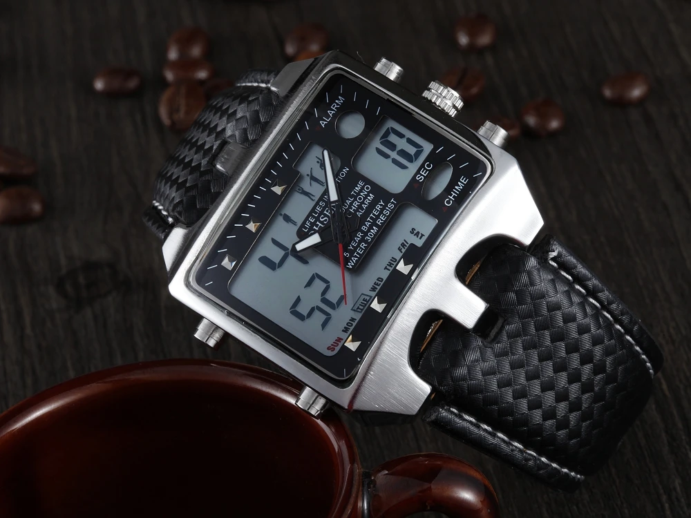 Feature:Back Light,Alarm,Water Resistant,Stop Watch,Complete Calendar,Multiple Time Zone,Chronograph,Auto Date,LED display