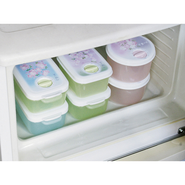 ●日持ちする物はイエローグリーン、速く消費しなければならない物はピンクと容器を使い分け消費目安を色でチェック、食材の無駄を減らせます。