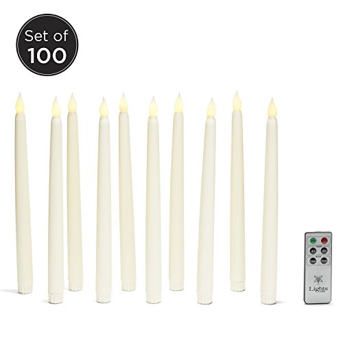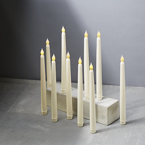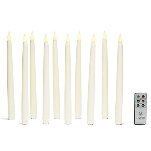 Description - 1 set of ten 10" wax taper candles with a warm white glowing LED inside each candle.