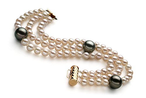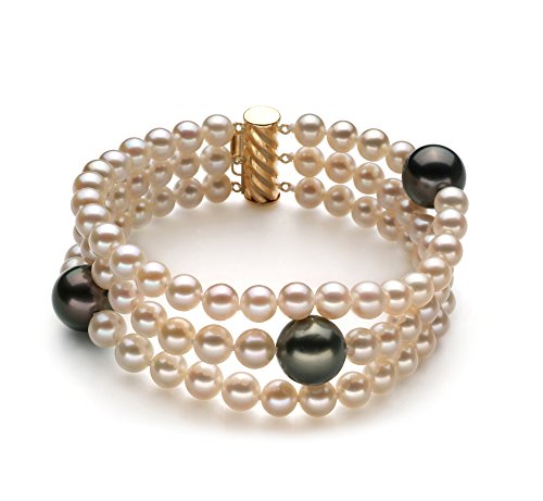 -. Title : Black and White 5-11mm AA Quality Tahitian and Freshwater 14K Yellow Gold Pearl Bracelet