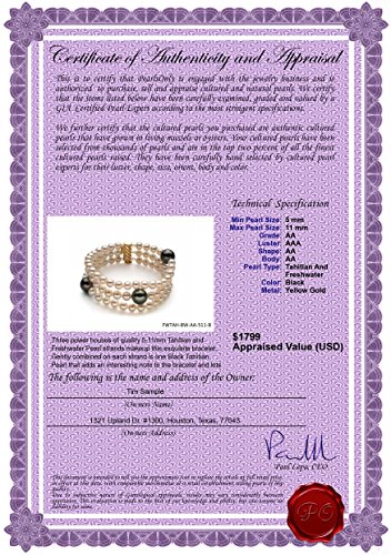 -. Feature : Included FREE with your cultured pearls bracelet is an Appraisal Certificate prepared by a Pearl Expert describing in detail your bracelet size, color and body shape. A color picture of your bracelet is shown on each certificate to ensure carefree insurance claims should those ever arise. It is a wonderful keepsake that shows you truly care. / Create a WOW! Experience with a FREE matching gift box. Our boxes are exclusively designed for PearlsOnly to gently hold your cultured pearl bracelet during shipping and also to be breathtaking when your cultured pearl bracelet is unwrapped and opened. With a focus on detail and elegance, the overall packaging from outside wrapping to inside, creates an unforgettable opening experience. / Easily care for your cultured pearls bracelet, with a FREE silky storage pouch to protect your cultured pearls bracelet when you are not wearing it. Although cultured pearls are very easy to take care off, we do include a FREE Pearl Care Card, so that you can easily know how to best take care of your cultured pearls bracelet to keeps its value and beauty. / We want to be 100% satisfied with your purchase and that is why we offer 30-day returns on all of your purchases. Returns are easy and should you need to return or exchange an item, our customer care team is ready to assist you around the clock. And with a huge selection of Freshwater Cultereed Pearls, Japanese Akoya Cultured Pearls, Saltwater Cultured Pearls, Tahitian Cultured Pearls and SouthSea Cultured Pearls you can find so many things to suit your taste.