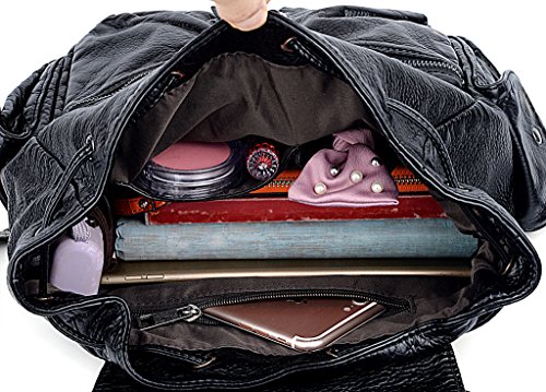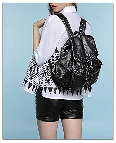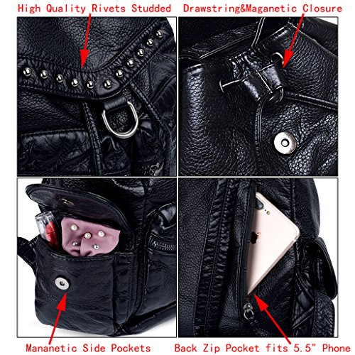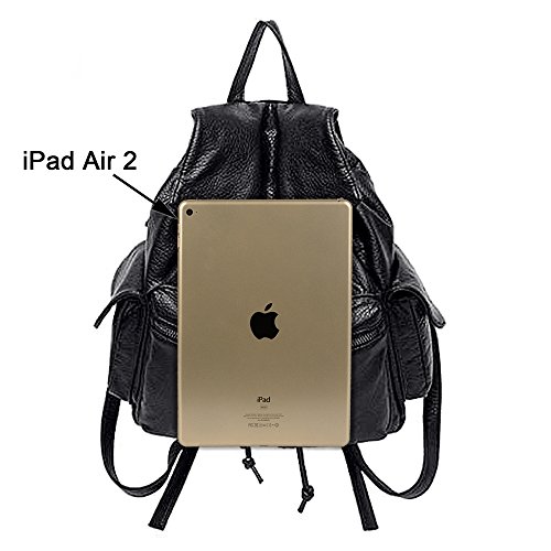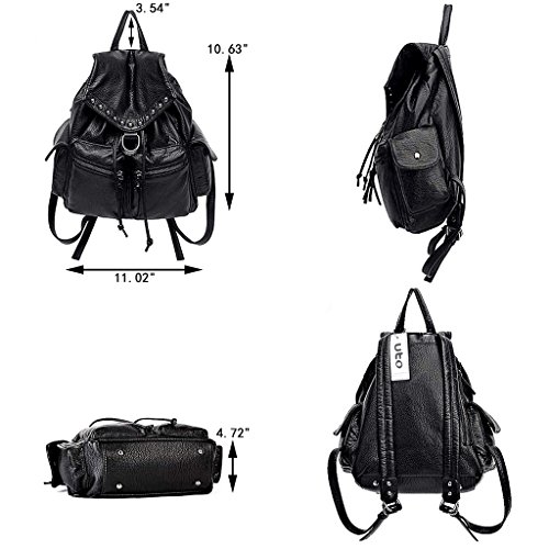 -. Brand : UTO -. Department : womens -. Feature : HIGH QUALITY - Ultra soft synthetic washed leather with modern black hardware, waterproof and anti-scratch. 2 adjustable back straps and 1 top loop handle. / WELL DESIGN - Rivet studded design on flapover. Magnetic and drawstring closure, safe for your property. Detailed streamlined stiching. Full-lined coffee fabric lining. / LARGE CAPACITY - Interior contains 2 open pockets and 1 zipper pocket. Exterior: 2 front zipper pockets, 2 side magnetic pockets and 1 back zipper pocket. / EXTREMELY PRACTICAL - Comfortably holds a 9.7" iPad, tablet or a laptop 10" and under. Exterior pockets can hold your smartphone and other essential items. / DIMENSIONS - 11.02"L x 4.72"W x 10.63"H. Weight: 1.76 pounds. Adjustable back straps length: 33.46". Top Loop Handle drop: 3.54". -. ProductGroup : Shoes -. ProductTypeName : HANDBAG -. Title : UTO Women Backpack Purse PU Washed Leather Rivet Studded drawstring Ladies Rucksack Shoulder Bag