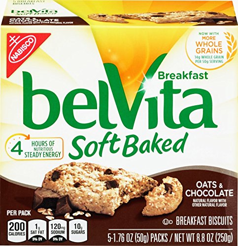belVita Soft Baked Breakfast Biscuits, Oats & Chocolate, 5 Count Box, 8.8 Ounce (Pack of 6)