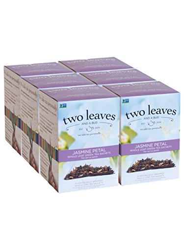-. Binding : Grocery -. Brand : Two Leaves Tea Company -. EAN : 0894058000934 -. Feature : 15 Individually Wrapped Sachets / Green Tea / Jasmine Petal is dried with petals of jasmine flowers. As the tea dries, it absorbs the scent of the jasmine. We leave the petals in for a great taste and visual experience. -. Label : Two Leaves Tea Company -. Manufacturer : Two Leaves Tea Company -. Model : T00715 -. MPN : T00715 -. NumberOfItems : 1 -. PackageQuantity : 6 -. PartNumber : T00715 -. ProductGroup : Grocery -. ProductTypeName : GROCERY -. Publisher : Two Leaves Tea Company -. ReleaseDate : 2006-04-19 -. Studio : Two Leaves Tea Company -. Title : Two Leaves Tea Company Jasmine Petal Green Tea, 15-Count Boxes (Pack of 6) -. UPC : 894058000934