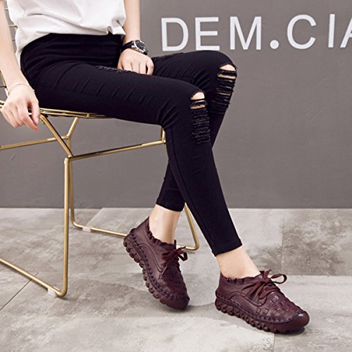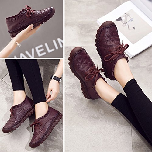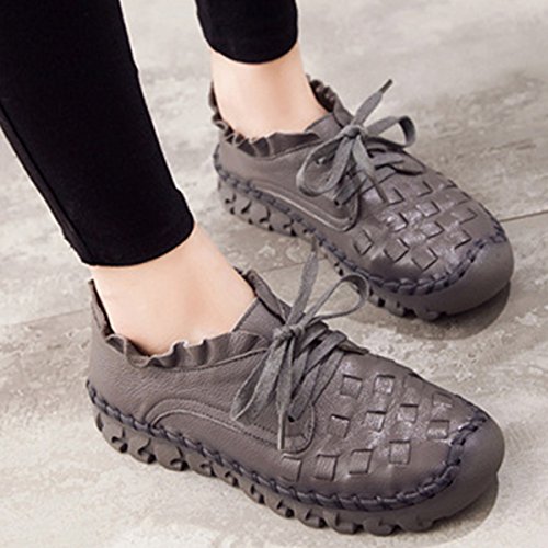 Binding : Apparel Product Description Please Note: 1.Please see the Size Reference to find the correct size. Size Chart : Our brand shoes 5 B(M)US =American Women Size 5 US =Length 8.94(Inches) =Width 3.35(Inches) =Tag Size (CN) 36 Our brand shoes 6 B(M)US =American Women Size 6 US =Length 9.13(Inches) =Width 3.43(Inches)=Tag Size (CN) 37 Our brand shoes 7 B(M)US =American Women Size 7 US =Length 9.33(Inches) =Width 3.50(Inches)=Tag Size (CN) 38 Our brand shoes 8 B(M)US =American Women Size 8 US =Length 9.53(Inches) =Width 3.57(Inches)=Tag Size (CN) 39 Our brand shoes 9 B(M)US =American Women Size 9 US =Length 9.72(Inches) =Width 3.65(Inches)=Tag Size (CN) 40 Our brand shoes 10 B(M)US =American Women Size 10 US =Length 9.92(Inches) =Width 3.72(Inches)=Tag Size (CN) 41 Our brand shoes 11 B(M)US =American Women Size 11 US =Length 10.12(Inches) =Width 3.79(Inches)=Tag Size (CN) 42 Shoe Type: Flat Shoes Toe Type: Round Toe Closure Type: Lace Up Heel Type: Flat Heel Height: 2cm Gender: Female Occasion: Casual, Daily, Outdoor Season: Spring, Summer, Autumn Color: Black,Grey,Red Wine,Beige,Brown Material: Synthetic Upper Material: Genuine Leather Outsole Material: Rubber Package included: 1x pair of shoes(without box)