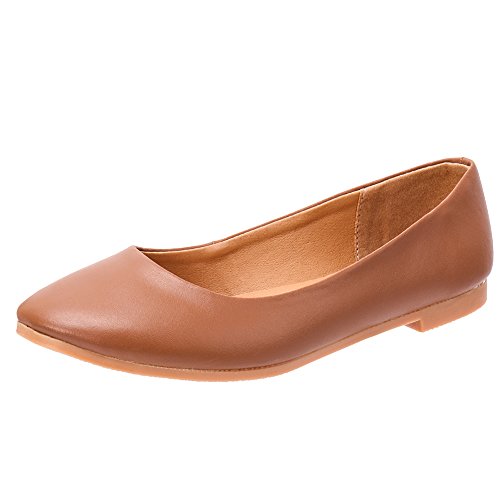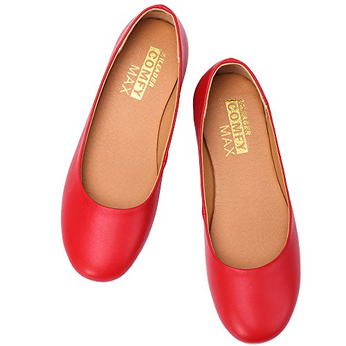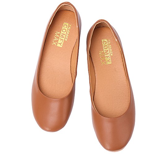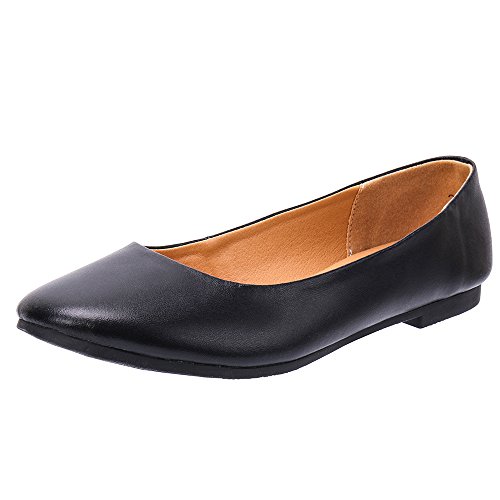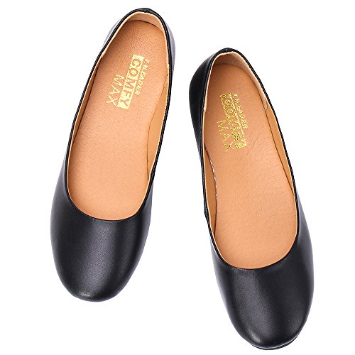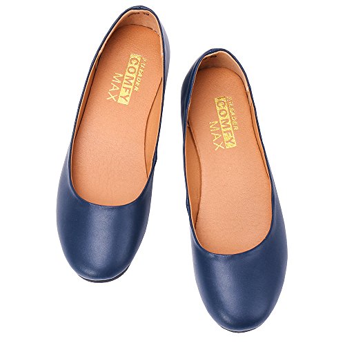 Aleader Women's Leather Classic Comfort Ballerina Walking Flats Shoes