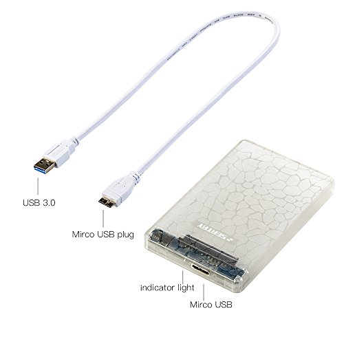 HDD External Enclosure, Seatay 2.5 Inch SATA External Hard Drive Enclosure Case for 9.5mm 7mm 2.5" USB 3.0 to HDD and SSD (Transparent)