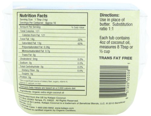 -. Feature : Kelapo cold pressed, 100% organic Extra Virgin Coconut Oil / 100% natural and unrefined; free of trans fats; vegetarian / Packaged in amber bottle to maintain freshness / Fair Trade Approved; produced in Sri Lanka / Use as an all-natural alternative to butter and other oils