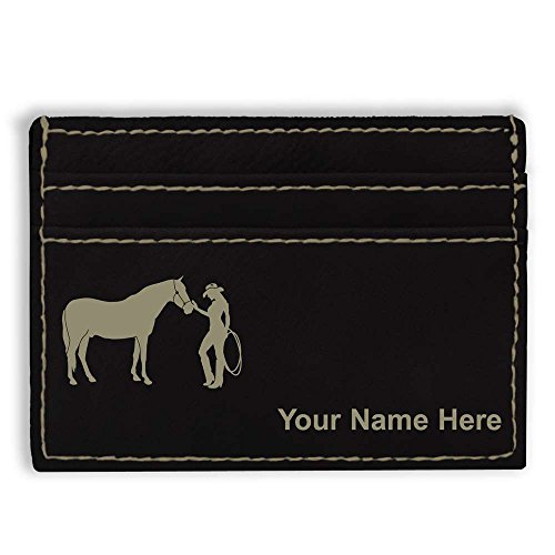 -. Binding : Apparel -. Brand : SkunkWerkz -. ClothingSize : Medium -. Color : Black -. Department : mens -. EAN : 0655222572219 -. Feature : The Money Clip Wallet is laser engraved with the image that you see in the photo. / Your name or personalized message will be engraved on the wallet for free. / Synthetic leather construction. Includes space for 3 credit cards. / You may have one line of engraved text - 20 characters maximum. / Click the "Customize Now" button to begin customizing your wallet. -. ProductGroup : Apparel -. ProductTypeName : ACCESSORY -. Size : Medium -. Title : Money Clip Wallet, Horse and Cowgirl, Personalized Engraving Included (Black) -. UPC : 655222572219
