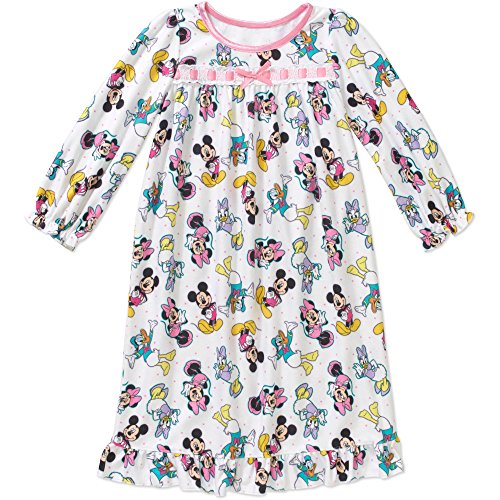 Disney Little Girl's Minnie Mouse and Friends Long Sleeve Nightgown Sleep Dress (3T)
