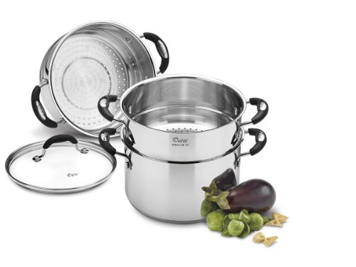 Set includes: 3 QT Saucepot with Cover, 2 separate 20 cm Stacking Steamer Inserts