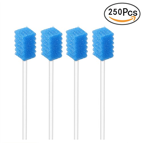 Disposable Unflavored Oral Care Sponge Swabs,Tooth shape blue (250 Count )