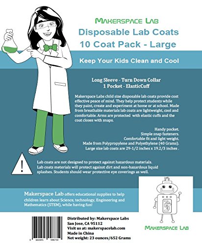 Makerspace Lab Disposable Lab Coats, White, Child Large, 10 Pack