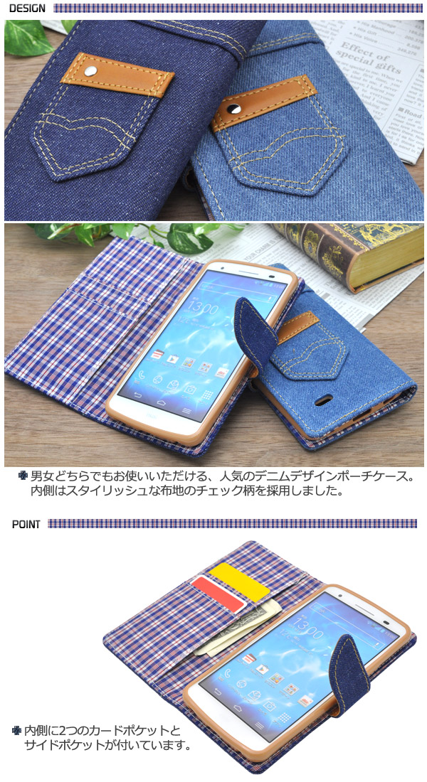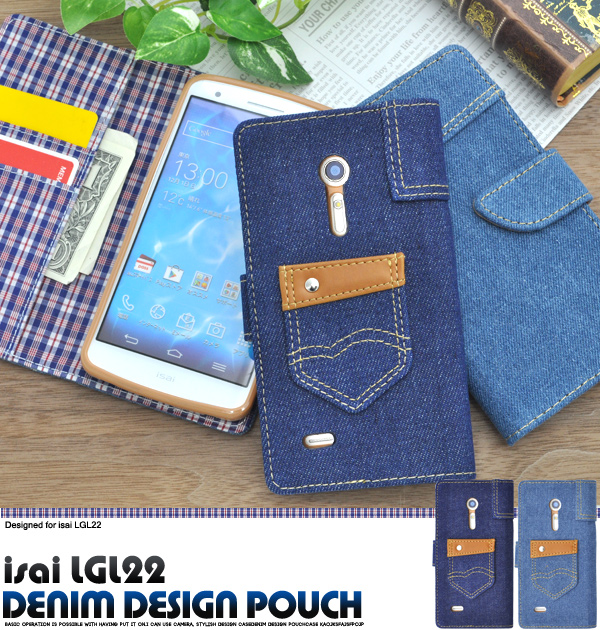 isai LGL22用デニムデザインケースポーチ(ジーンズデザイン)