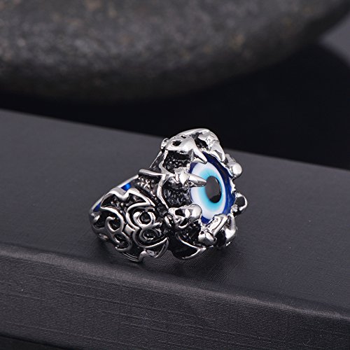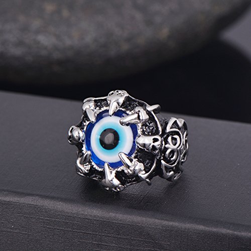 Binding : Jewelry Product Description EVBEA® Gothic Skull Dragon Claw Evil Devil Eye Biker Rings with Super Cool Talons and Fangs Blue for Men and Women Adjustable (Size 7 to 15)