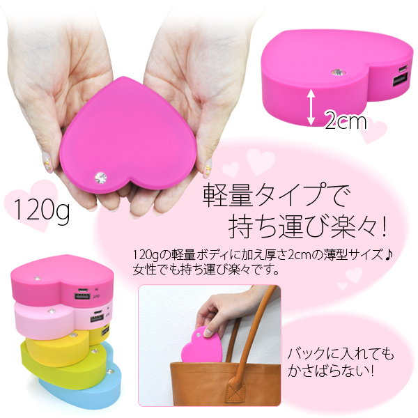 | かわいいハート型♪ 4400mAhハート型モバイルバッテリー | | | | |