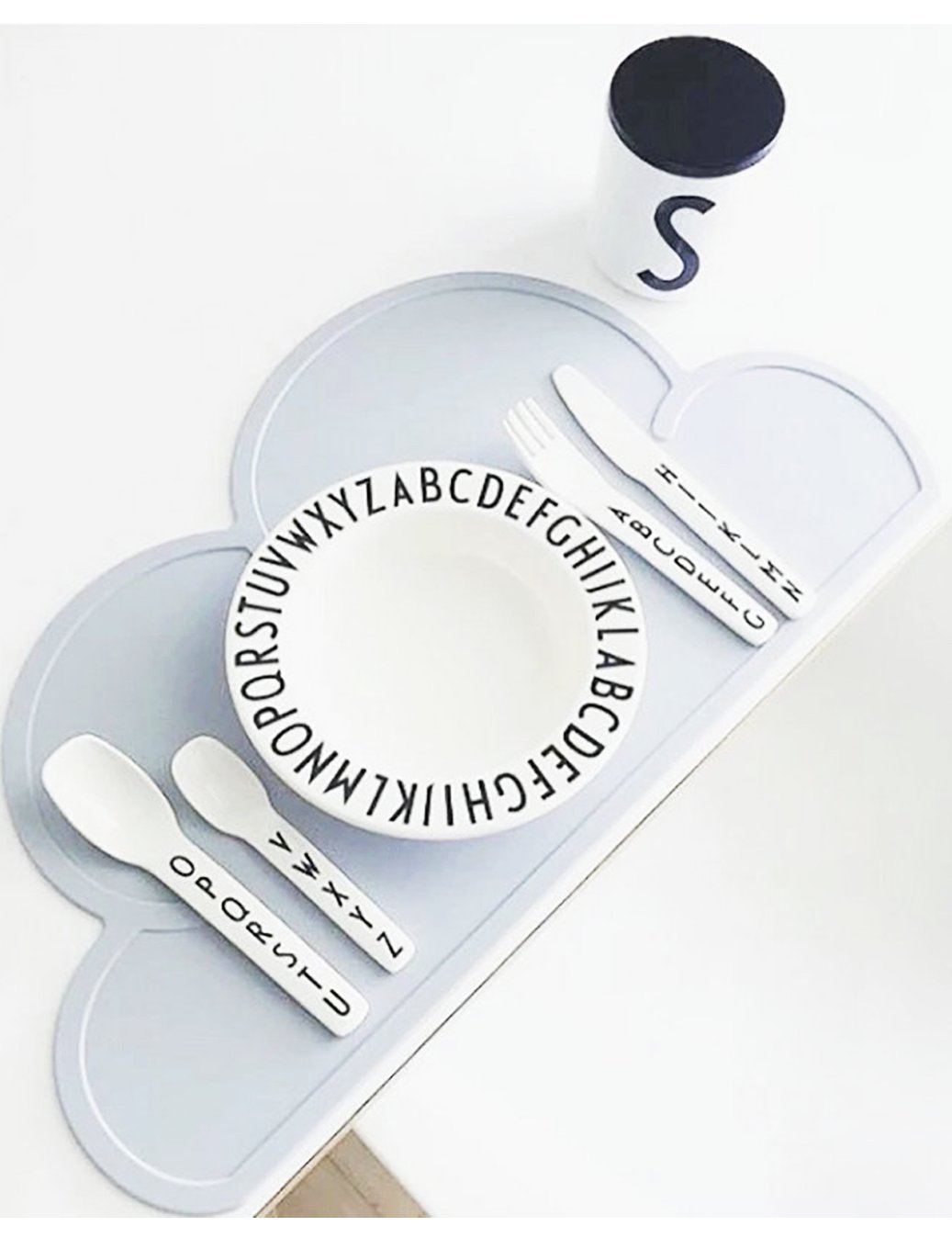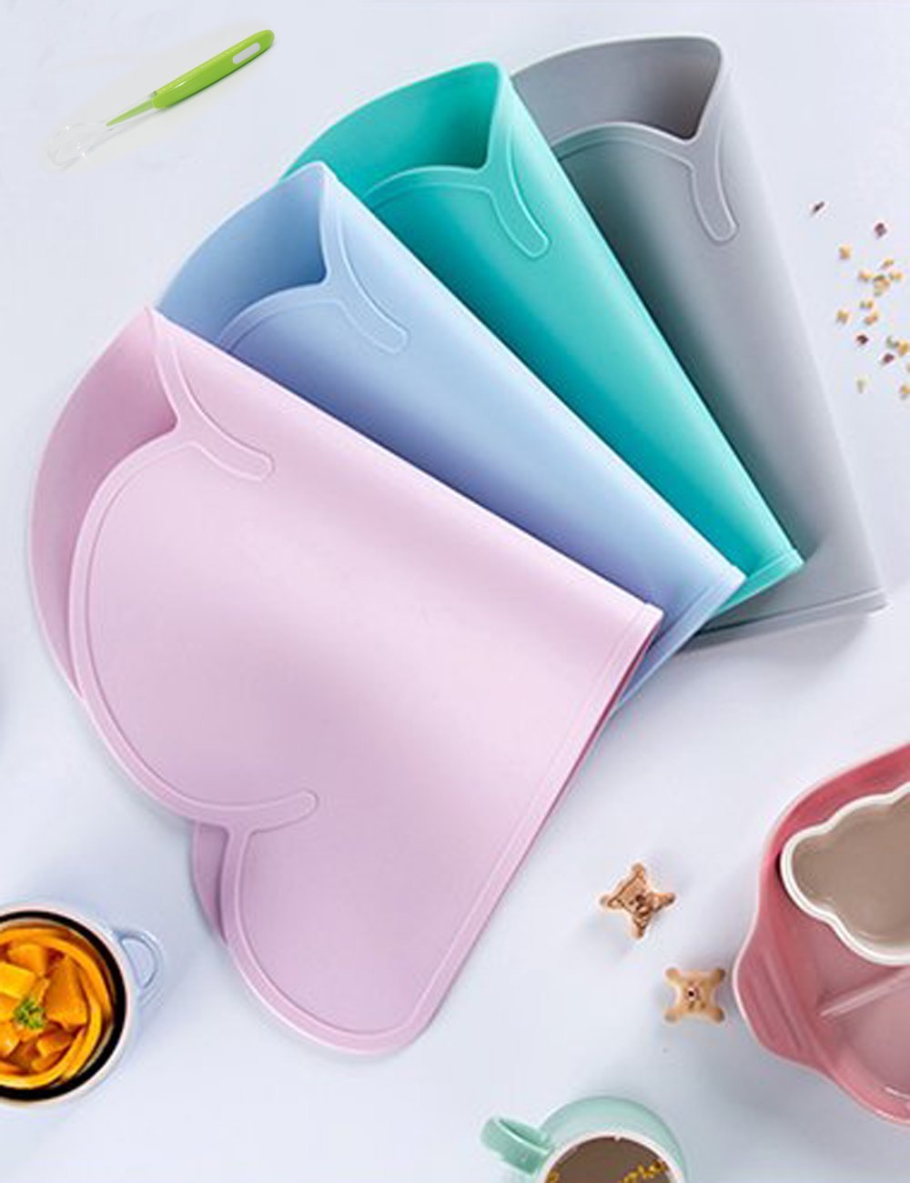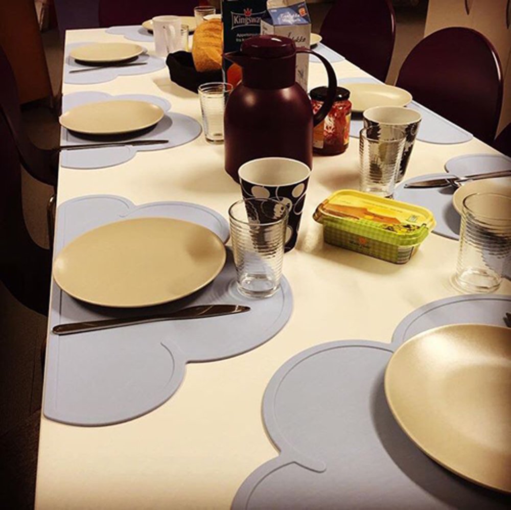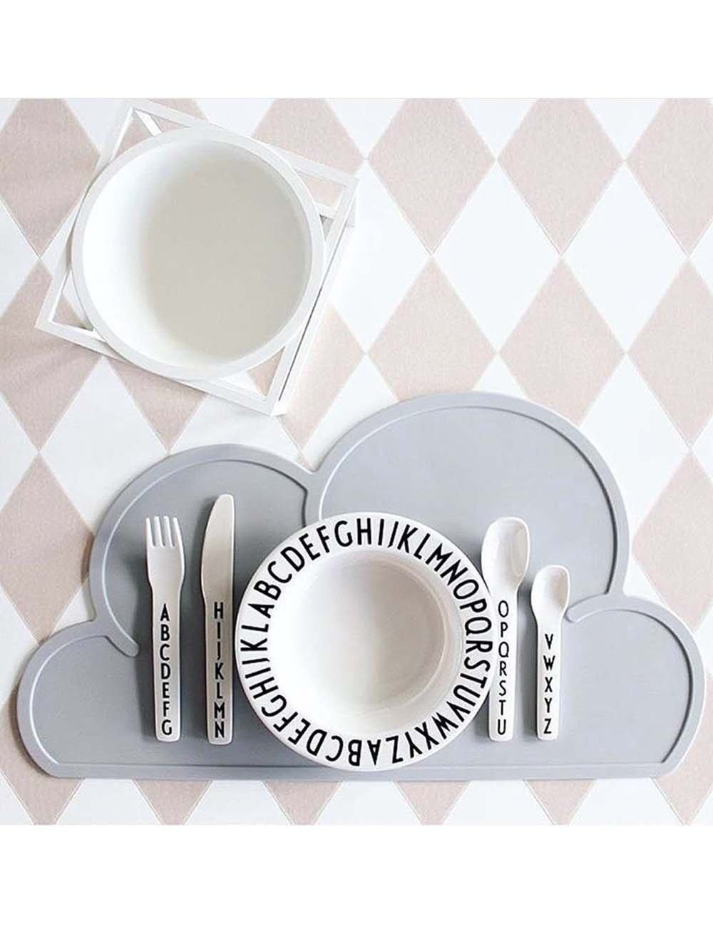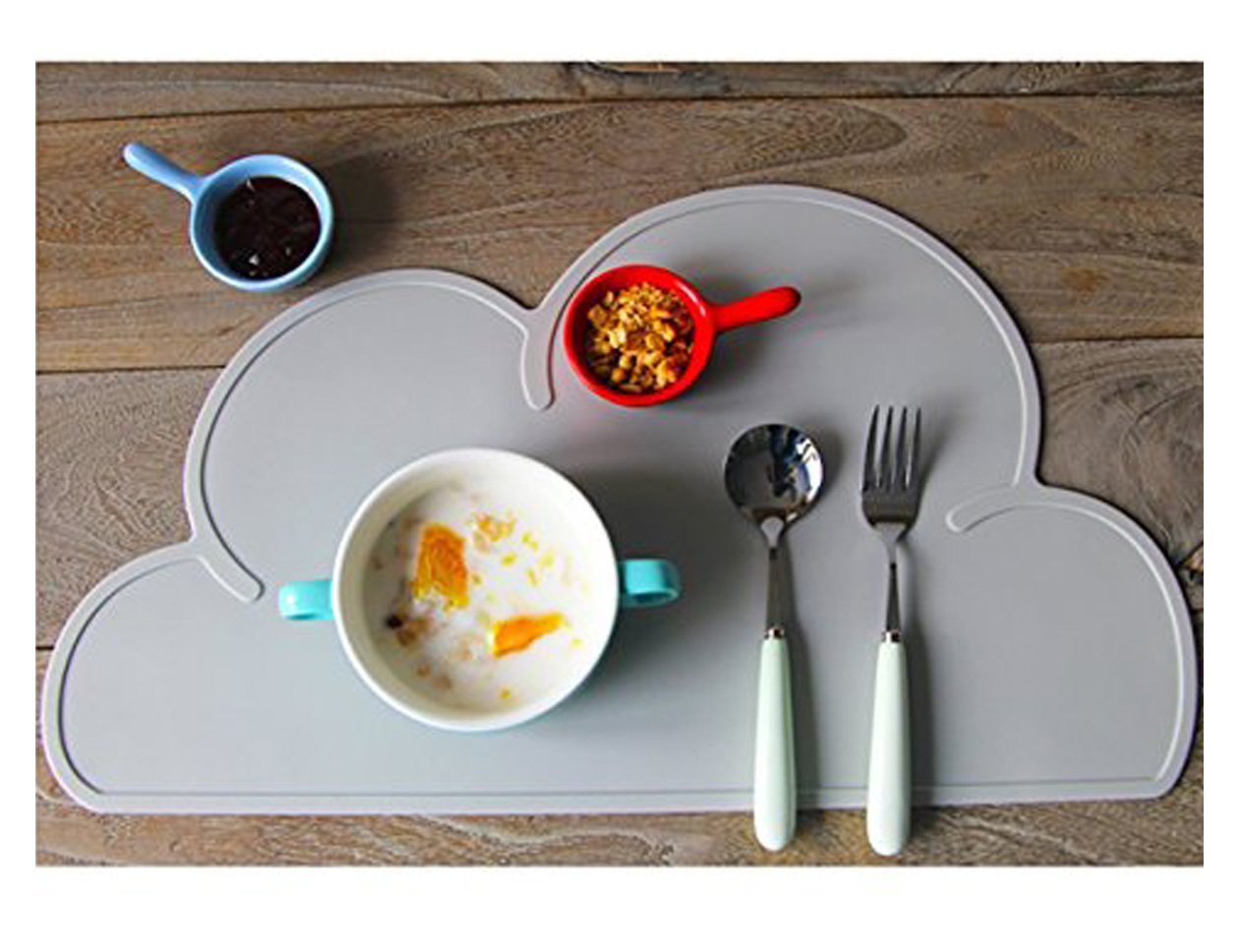 Reusable coloring cloud placemat is made of FDA approved food grade antimicrobial silicone