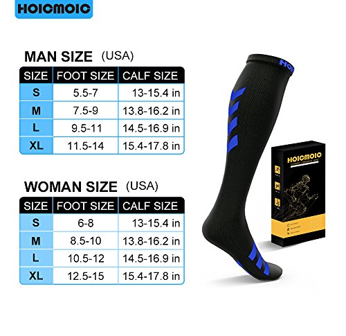 - Break Through Barriers&Enhance Athletic Performance - Hoicmoic is devoted to providing the most professional equipment support for global sports enthusiasts. We adopted innovative knitting technology on our high-density knitted compression socks, which achieved pressure’s uniform progressive increase in stages. Keep your calf muscle in place, relieve sore muscle and lactic acid accumulation. The three widened damping terry loop on pelma can reduce friction, prevent blisters and protect your feet
