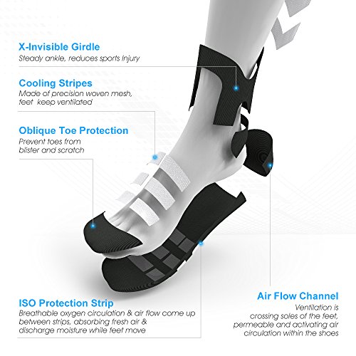 - New Designed Air Convection System, Improved Function of Moisture Absorption & Perspiration Elimination - We used comfortable and breathable woven fabrics to make the socks breathable and quick-drying. With the elasticity of the arch, the concavo-convex thread woven achieved air convective circulation on pelma. Cooling fast and wicking away moisture effectively for excellent performance in hot weather