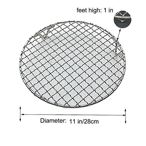 Fivebop Multi-Purpose Stainless Steel Cross Wire Round Steaming Cooling Barbecue Racks/Carbon Baking Net/Grills/Pan Grate with 3 Legs (11 inches)