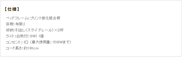 材質:本体-プリント紙化粧合板、コンセント-1口(1500W)、照明-10W(1個)