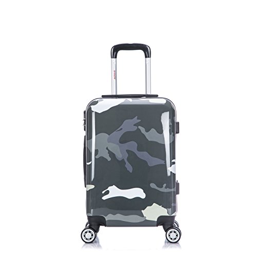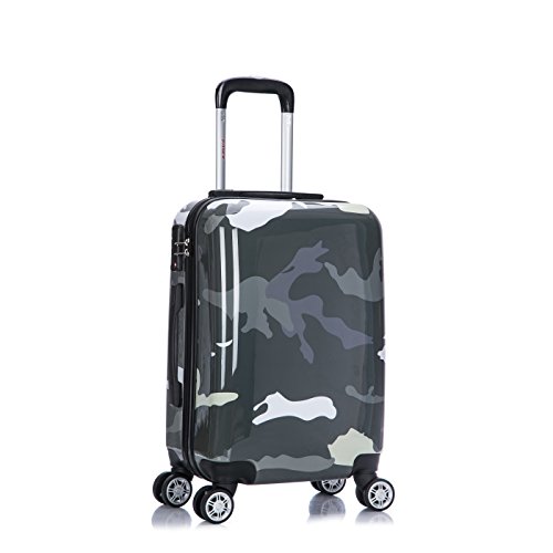 Product Description Buy this all new earthy camouflage design that's durable and could carry loads for your travels, strolling and all. A great item to have. Dimensions: 20 inches H x 14.17 inches L x 8.26 inches W - 5.7 lbs Features: Multi-Compartment, Spinner, Telescoping Handle, Carry On Upright Luggage, Lightweight, Upright and Durable | Materials: ABS, Polycarbonate 0