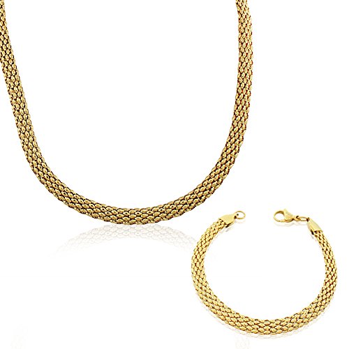 -. Feature : "Golden Mesh Women's Set" by EDFORCE / Material: Stainless Steel / Necklace Dimensions: 18.00in x 0.23in / Bracelet Dimensions: 7.25in x 0.23in / Origin: Imported