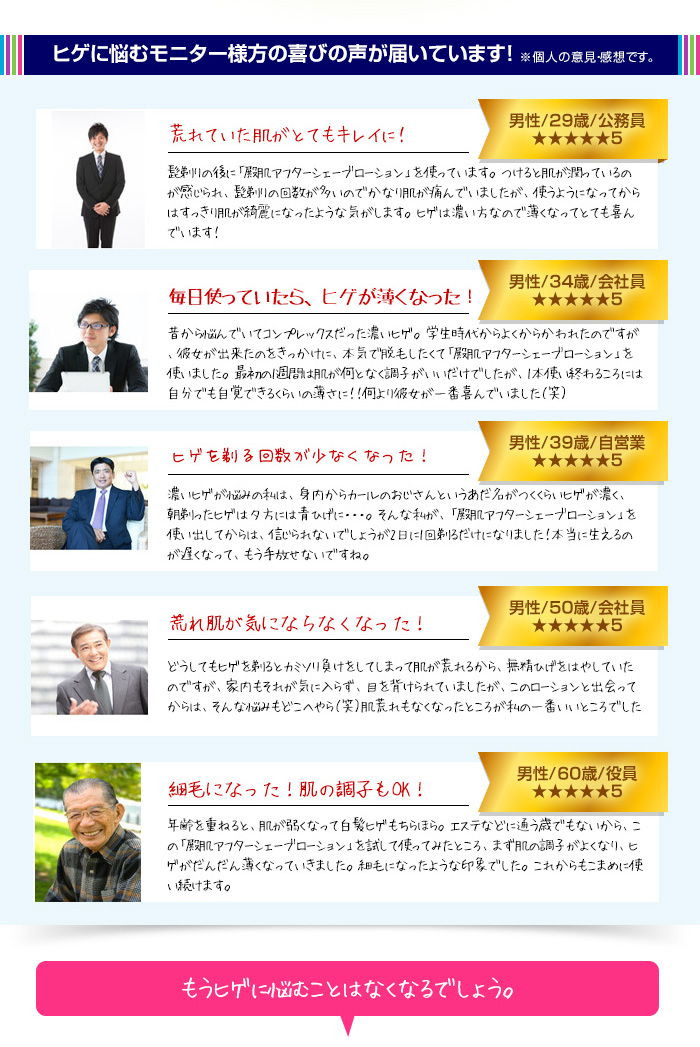 | ご使用方法 | 適量をコットンまたは手に取り、ヒゲ剃り後のお肌になじませてご使用下さい。 |