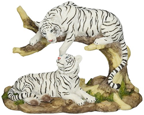 -. Title : 7-Inch Medium Polyresin White Tiger Couple Resting Figurine