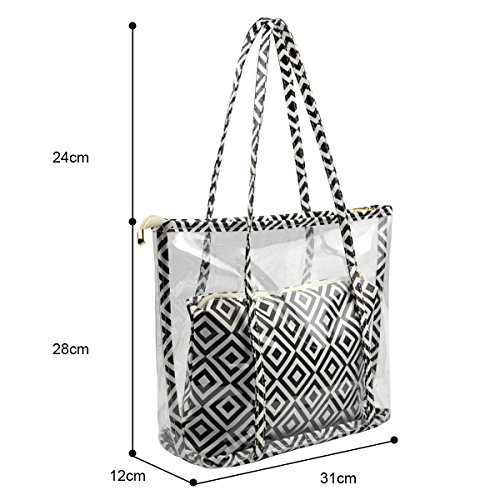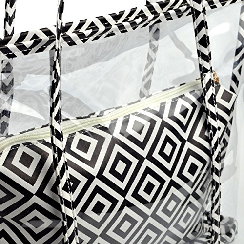 -. Brand : MICOM -. Color : multicoloured -. Department : womens -. Feature : Material:100% Vinly; / Size: 18.5 x 5.5 x 11.8(Inch) L*W*L / 2 in 1:1 large shoulder bag,1 small insert bag with shoulder strap; / Insert can be used to conceal personal items you don't want those to see in your handbag for added security. / Waterproof, Zipper closure; Gorgeous color; -. PackageQuantity : 1 -. ProductGroup : Shoes -. ProductTypeName : HANDBAG -. Size : Large -. Title : Micom Chevron Large Clear Tote Bags PVC Beach Lash Package Tote Shoulder Bag with Interior Pocket